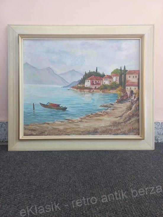 Akcija Idealna slika za Vas stambeni ili poslovni prostor. RARITET. Prelepa stara slika 55 godina, čitko potpisana, ulje na platnu. Slika je potpisana i napred i na poledjini gde se vidi potpis slikara i godina 1967. Dimenzije slike su sa ramom74*64,