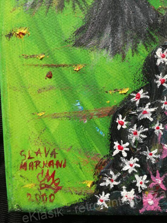 تحتوي اللوحات الفنية لـ Slava Markani على العديد من الزخارف الطبيعية والزهور ومناظر الجبال والحيوانات المختلفة والصقور وأسود النسر والتنين وأشجار النخيل والنمور والبشر والصور وغيرها من الصور المختلفة. ستكون لوحاته الفريدة تستحق المزيد والمزيد بمرور الوقت.