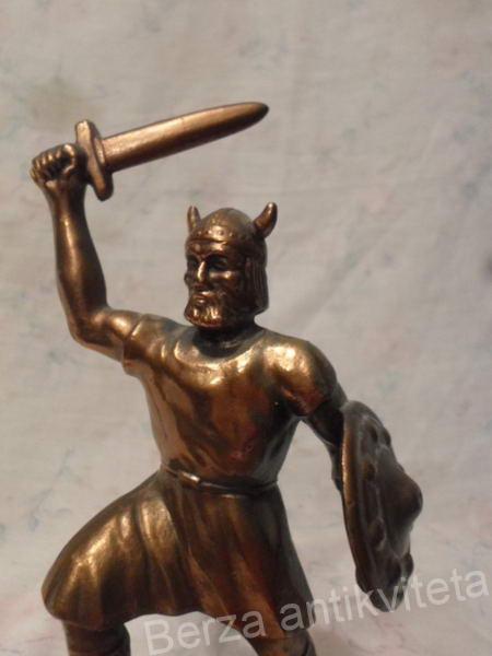 Figura ratnika. Kombinacija drveta i mesinga, postolje od drveta, dimenzije 11 x 6 cm, visina figure 18cm. Po boji kao da ima više bakra.