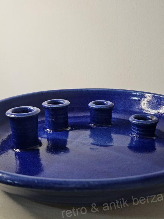 OZBILJNO ELEGANTAN KOBALT PLAVI TANJIR SVEĆNJAK