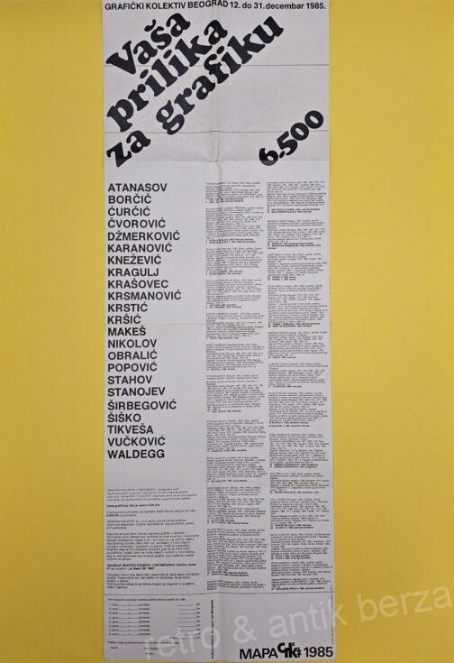Prodajemo plakat grafički kolektiv Beograd (održan od 12. do 31. decembra 1985. godine).