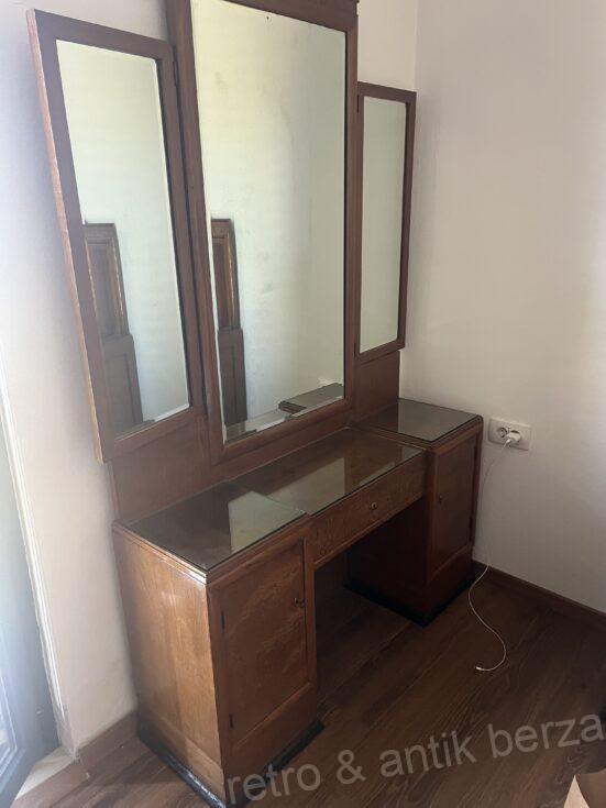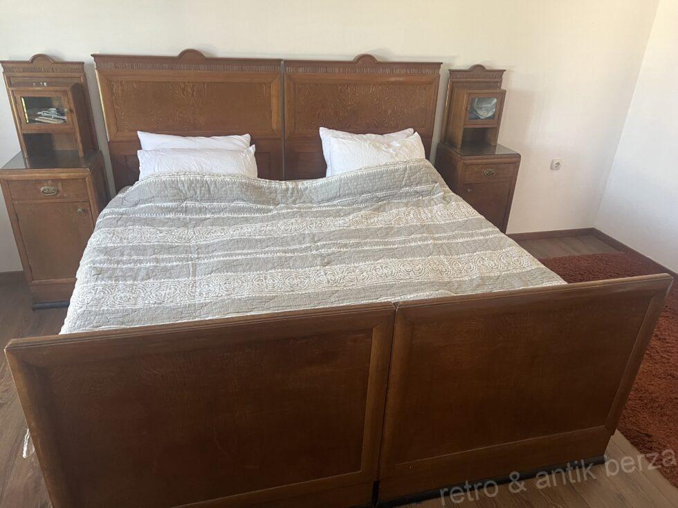 Prodajem antik spavaću sobu.. Sastoji se od kreveta koji mogu biti i samci,trenutno su spojeni kao bračni krevet,2 nocna ormarica,i komode sa ogledalom. Soba je jako stara,od 100-150 godina. Sto se ocuvanoati tiče dosta je dobro ocuvan sa nekim sitnim oštećenjima.
