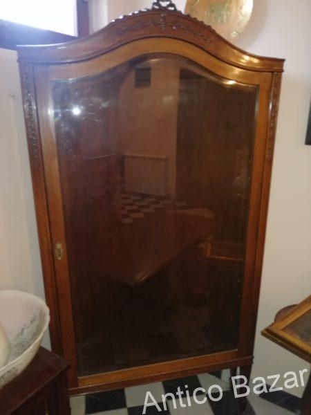 Stara stilska ugaona vitrina dimenzija širine 95cm, dubina 70cm sa dva bočna stakla. Potiče iz perioda 1920tih. Očuvana.