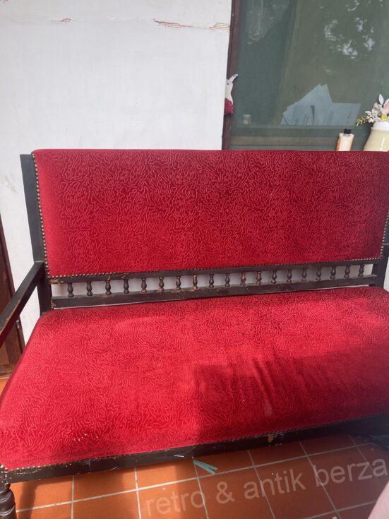 Lično preuzimanjeMoguća dostavaPlaćanje pouzećemPlaćanje pre slanjaRazmenaRadi se o dvosed ili kanabetu, sa drvenim ramom i tapaciranim sedistem i naslonom. Tapacir je od crvenog plisa sa teksturiranim sarama, sto mu daje luksuzniji izgled. Naslon i sediste su jednostavnih pravougaonih