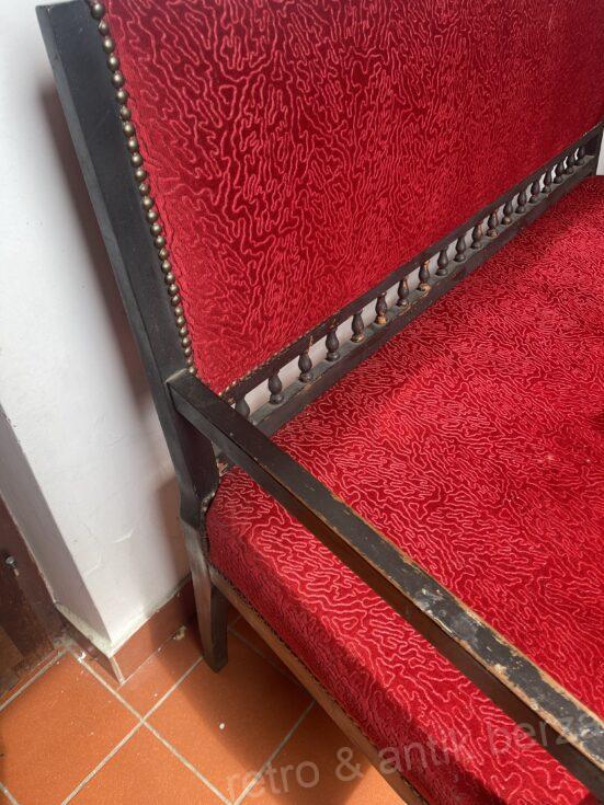 Lično preuzimanjeMoguća dostavaPlaćanje pouzećemPlaćanje pre slanjaRazmenaRadi se o dvosed ili kanabetu, sa drvenim ramom i tapaciranim sedistem i naslonom. Tapacir je od crvenog plisa sa teksturiranim sarama, sto mu daje luksuzniji izgled. Naslon i sediste su jednostavnih pravougaonih