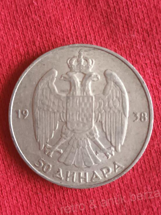 srebrna kovanica od 50 dinara iz 1938. godine, izdata u Kraljevini Jugoslaviji za vreme vladavine kralja Petra II.
