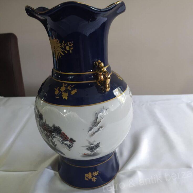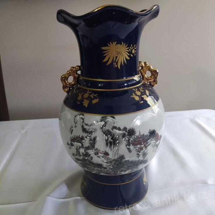 Kineska vaza – ćup, kobalt, plavo-bela sa ornamentima u pozlati, ručno oslikana.