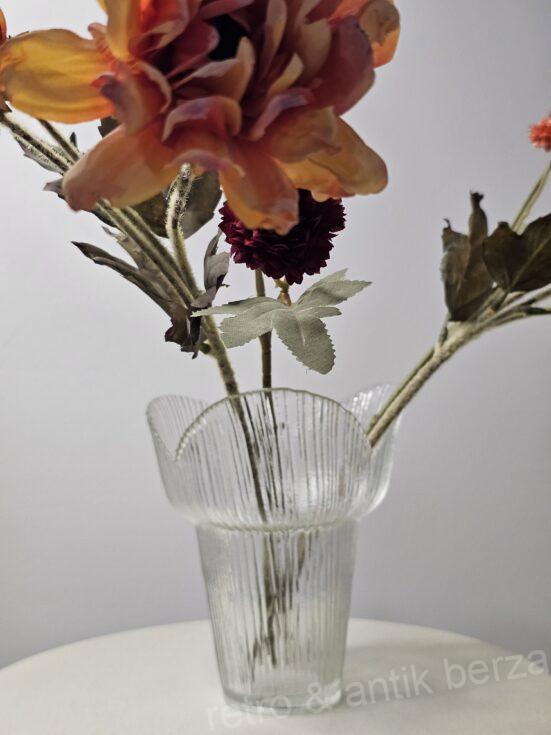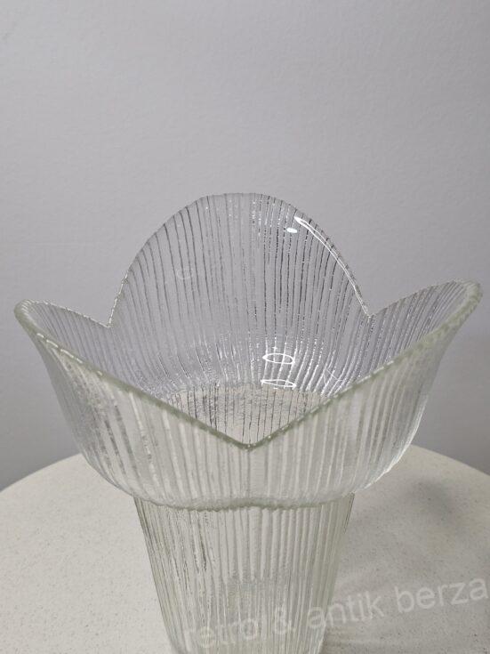 Prozirna vaza, od teksturiranog stakla pripada seriji Eva koju je proizvodila finska kompanija za proizvodnju stakla Muurla.