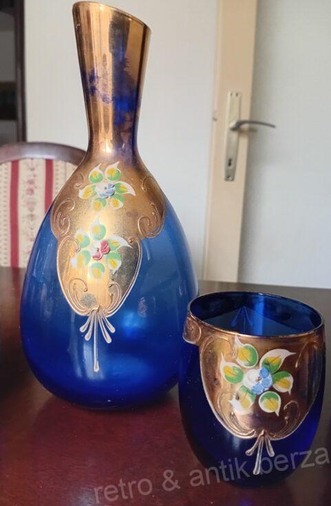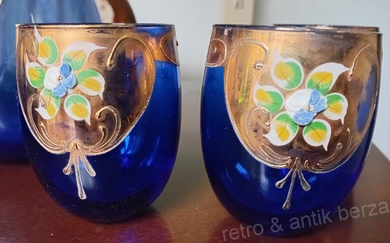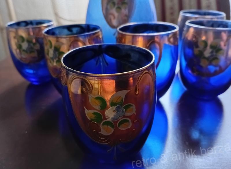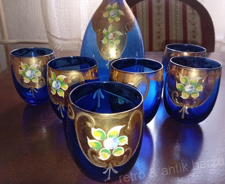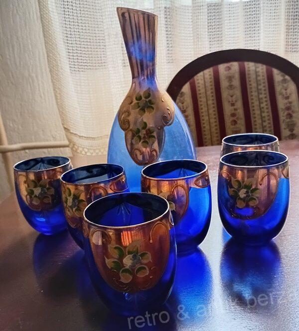 Bohemia set za aperitiv od kobaltno plavog stakla, sa pozlatom 24 karata, ručno oslikano.