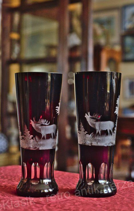 Vaze u paru od brušenog kristala sa motivom ,,jeleni u šumi“ visine 22 cm.