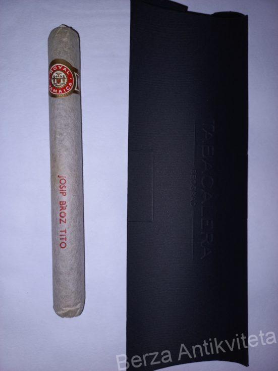 Jedinstveni arhivski primerak. U pitanju je specijalna edicija kompanije Royal Jamaica, koja je najverovatnije u periodu izmedju 1969. i 1972. godine, napravljena u cast tadasnjeg lidera SFRJ, Josipa Broza Tita. Cigara je cervantes/lonsdale dimenzije, odnosno 165mm x 16,67mm. Odlicno ocuvana! Pozvati na broj 0631669834
