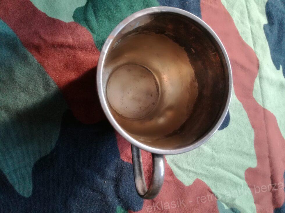 Stara metalna šolja boje srebra sa žigovima. Pogledajte ostale moje og