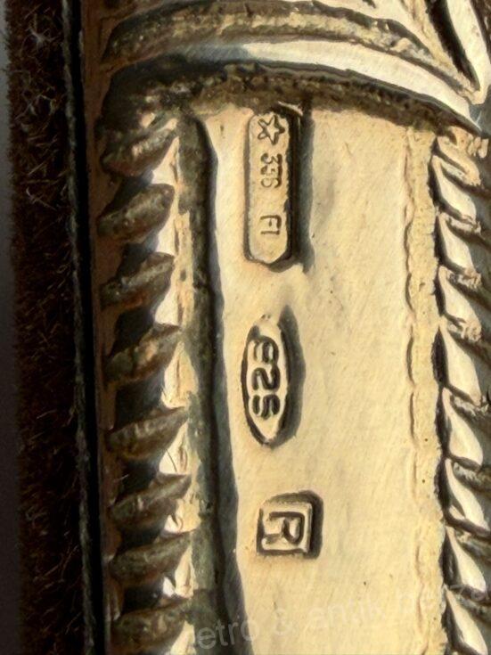 Prednji deo rama napravljen je od srebra 925 u klasičnoj firentinskoj dekorativnoj obradi, uz originalnu plišanu pozadinu.