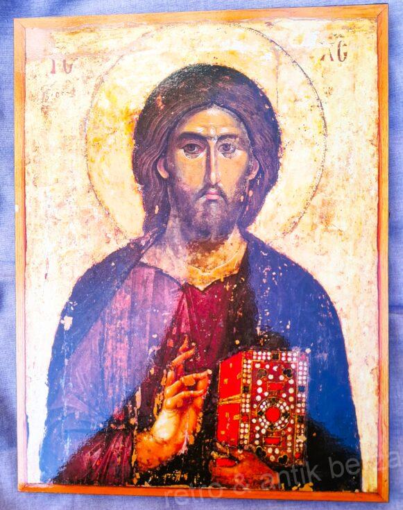 Replika ikone Hrista Pantokratora (Svedržitelja), koja je jedan od najčešćih prikaza Isusa Hrista u vizantijskoj i pravoslavnoj ikonografiji. čiji se original iz 13. veka čuva u riznici manastira Hilandar na Svetoj Gori.