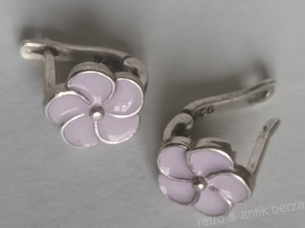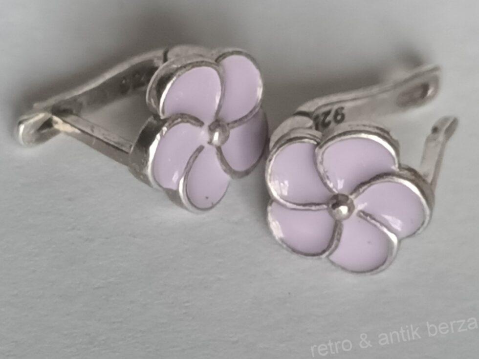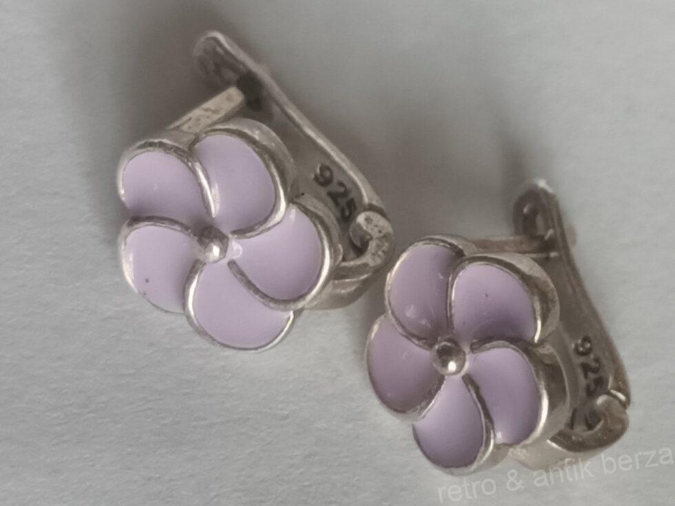Dizajn: Motiv cveta sa pet latica, prekriven svetloroze ili lila emajlom.