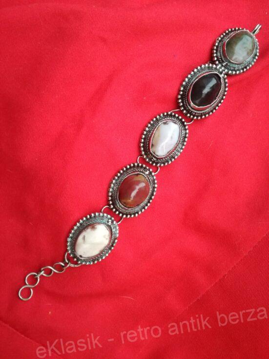 Narukvica filigran rad sa raznobojnim kamenjem srebrne boje