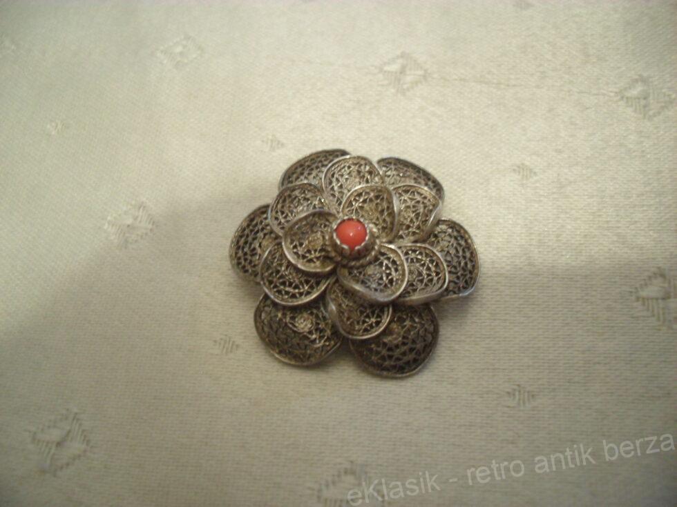 Filigran broš od srebra sa crvenim koralom 35 evra
