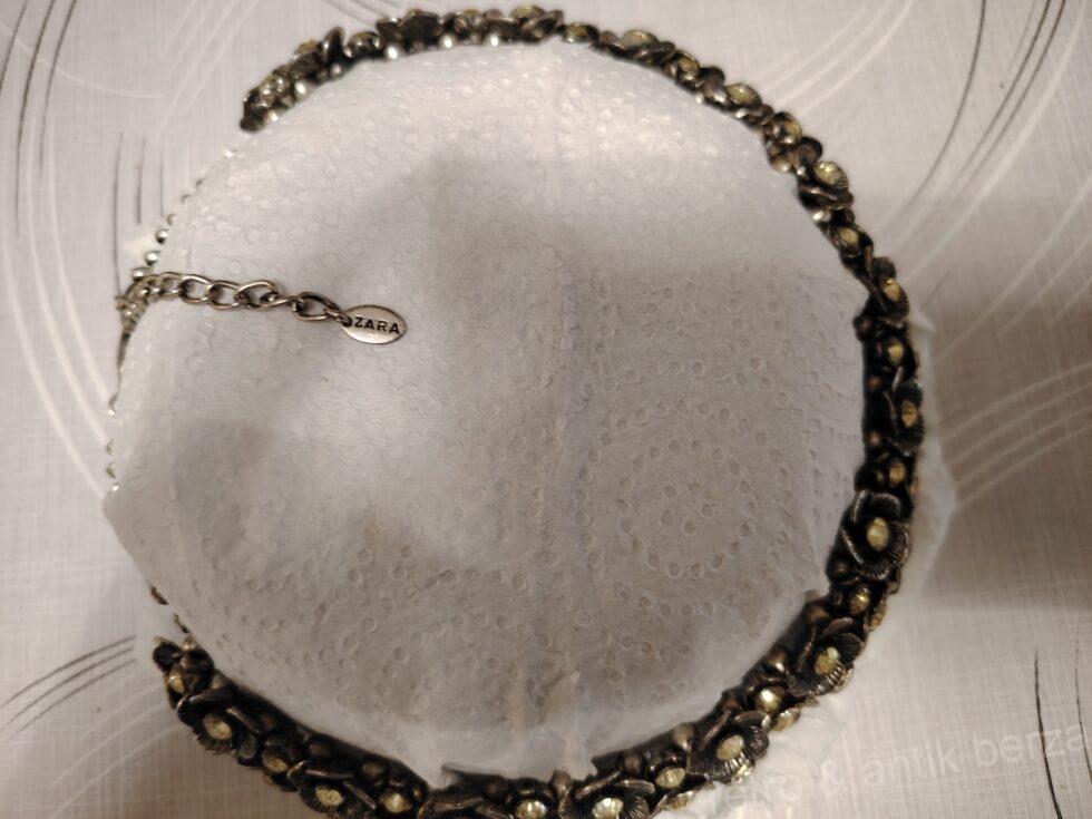 Stilska kratka ogrlica, choker, marke Zara. Motiv sitnih cvetića, otkupljena od prethodne vlasnice, ispravna sa minimalnim tragovima upotrebe.