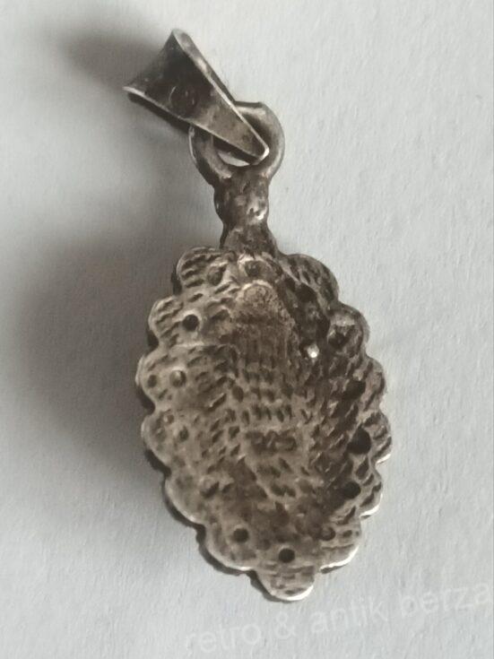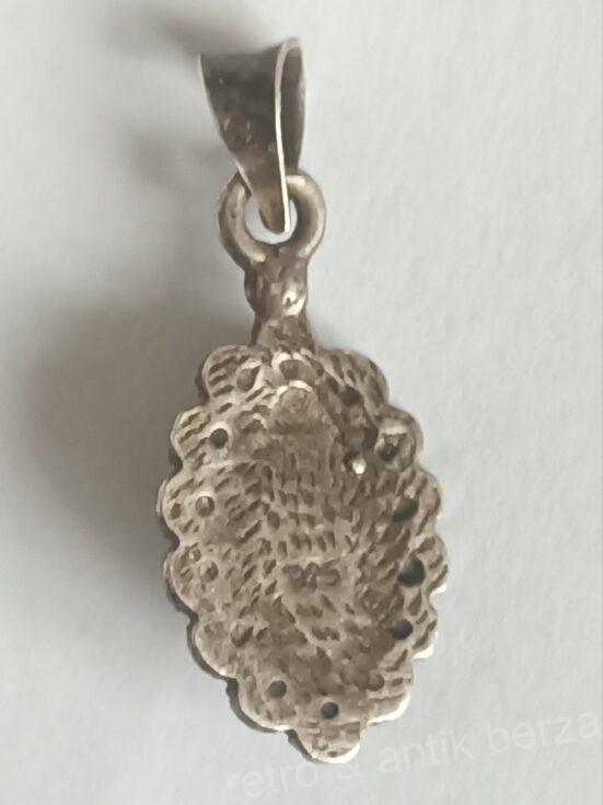 antikvitetni ili vintage privezak, koji se najčešće opisuje kao komad od srebra sa crnim oniksom u sredini, okružen sitnim cirkonima ili drugim kamenčićima.