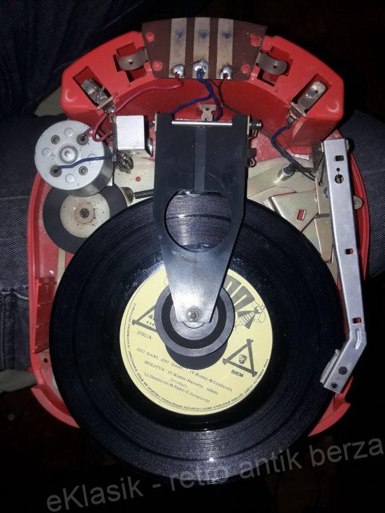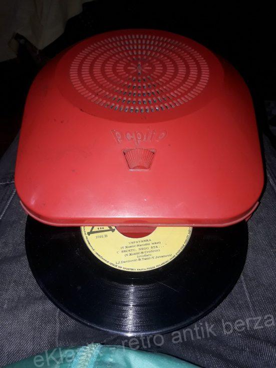 Stari prenosni gramofon `Pepito` radjen u Italiji 60 – ih. Mehanizam ispravan, kompletan. Od starosti istrulile male gumice koje drze glavu sa iglom! Sve vidljivo na slikama. Raritet!