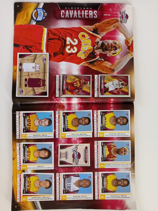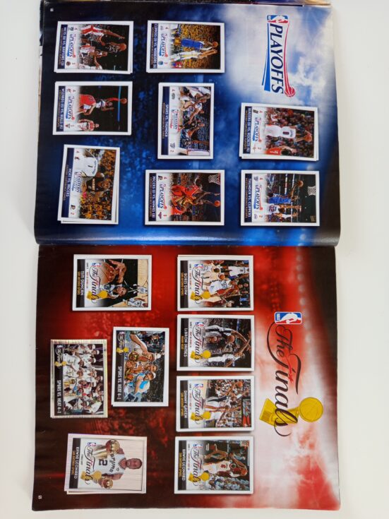 Album 2014-15 NBA Sticker Collections, album sadrzi 470 slicica. Popunjen je fale 4 slicice (000, 7, 401 i 426). Dobro stanje, jedan list iz sredine je odvojen.