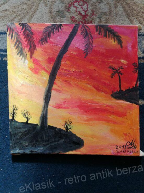Fire flower oil on canvas, by Slava Markani 17 000e Ostrvo sa palmama