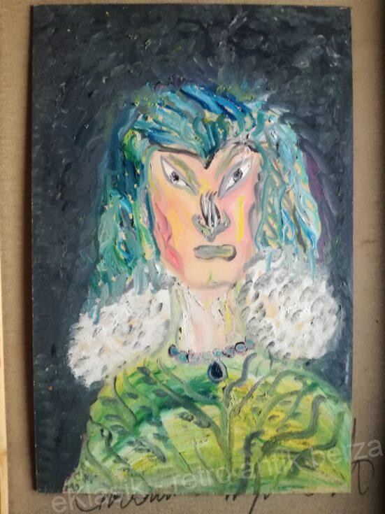Lady with blue necklace oil on hardboard Slava Markani. 26780e