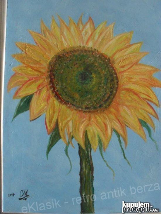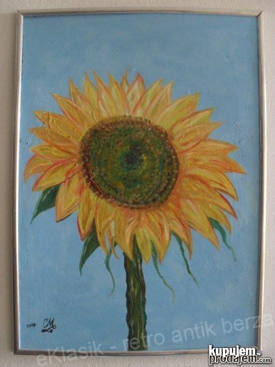 Suncokret – ulje na lesonitu. 54449e Uramljena slika sa ramom 72 x 52 cm.