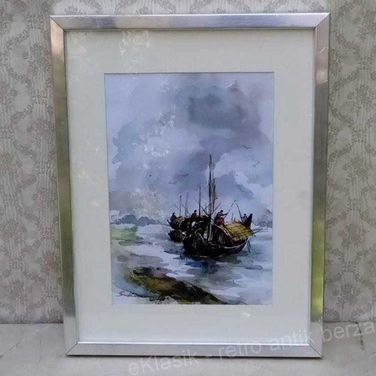 Akvarel na papiru sa motivom ribarskih brodica koje su se sklonile pred nadolazećom olujom. Sudeći po brodovima, reč je o Orjentalnom prizoru; brodice neobično podsećaju na Sampan. Spoljne dimenzije slike su 42,5 x 32,5, dok su dimenzije samog akvarela 29,5 x 20 cm. Potpisano. Cena: 7000 dinara, kontakt: 0607065754