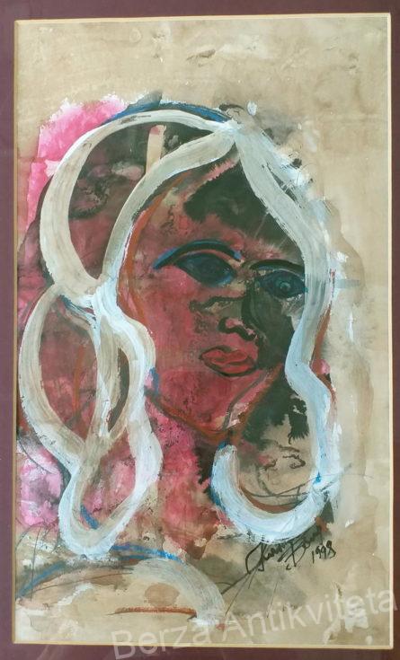 Diptih, tempera ili kombinovano na papiru, ramljeno -ustakljeno, sa paspartuom. Popis nečitak, 1998 K.B. (V)