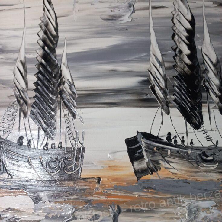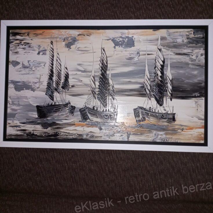 Miloš Mišković. Maestralni rad i zaista predivno delo ulje na platnu , BRODOVI. Savrseno ocuvana, . sa punim nanosom uljanih boja. predivno delo ulje na platnu čitko potpisa, u prelepom ramu. Slikar Miloš Mišković. . Dimenzija slike bez rama 70*50. Slika je uzivo jos lepsa.
